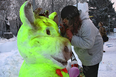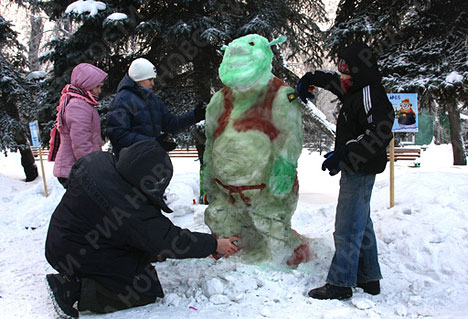 近日,在俄罗斯的克拉斯诺亚尔斯克市中心公园举办了新年游园活动。大众喜爱的雪人大评比拉开了游园活动的序幕……