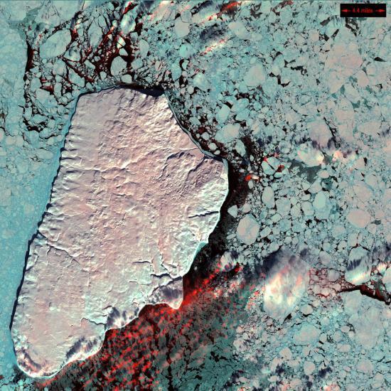 这片区域曾是亚马逊盆地的雨林地区,照片则不禁让人想起立体派艺术大师的作品。遭到人为砍伐的大片林地辐射农田和原野周围,而剩下来的健康植被则呈现一片鲜红色。