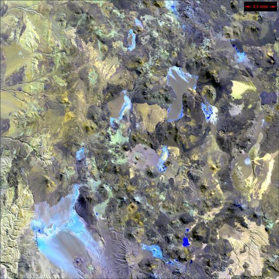 这一大片如今处于休眠状态的火山位于智利和阿根廷塔马卡省交界,给周围地区铺上了2英里(约合3.5公里)厚的岩浆外壳。这块令人难以置信的“调色板”表明了过去熔岩流的年龄和矿物质构成。