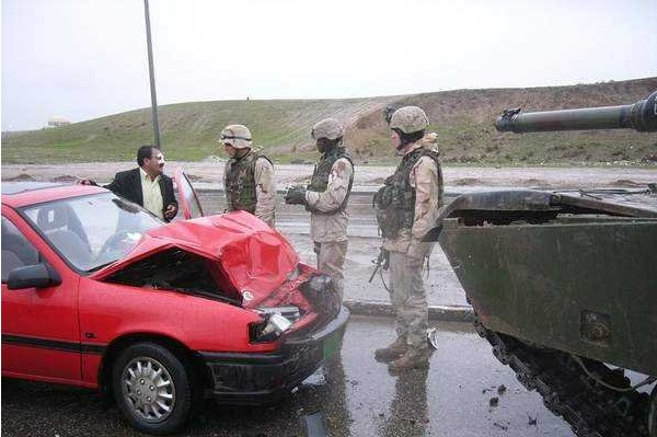 司机想试下他的车结实不,没办法