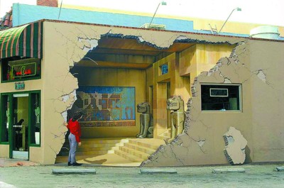 “地震废墟”原是三维壁画