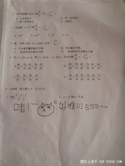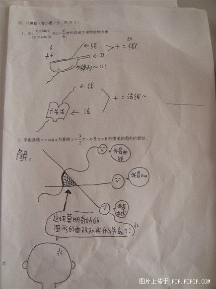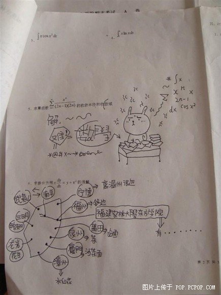 一张超级爆笑的高数试卷,作者实在是太可爱了,只是我觉得他这么有美术天分,怎么不去学美术,要去学那个死高数?!