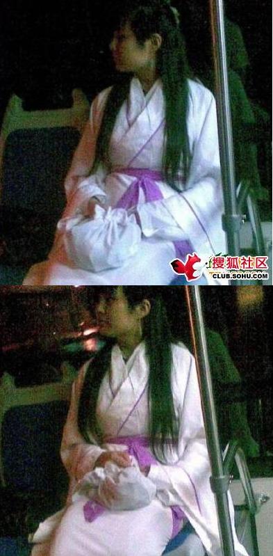 深夜公交车上,竟然出现这样穿着的女子。。。