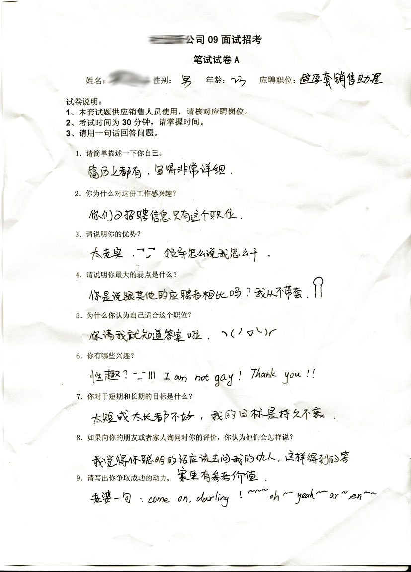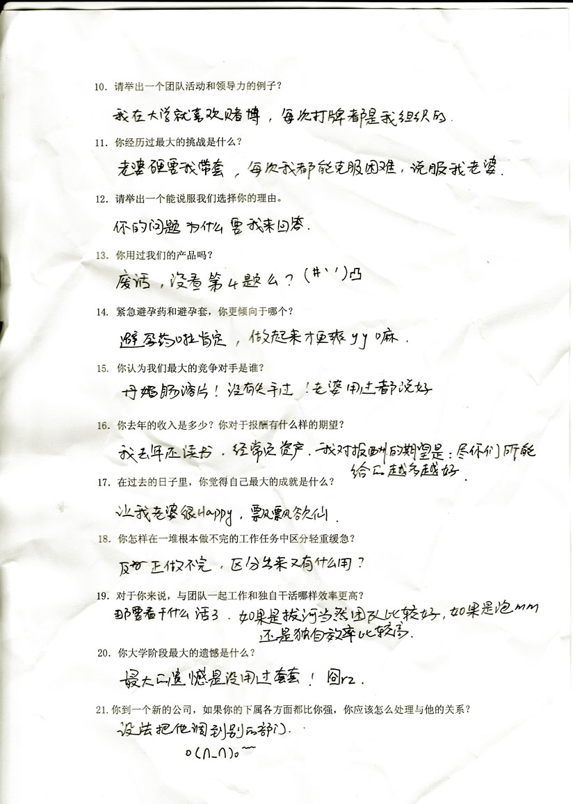 回复: 囧!避 孕 套公司的面试试卷。。。