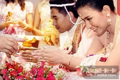 泰国人相当信奉佛教,佛教被定为国教。每个男子到了一定年龄,都要出家当一次和尚,少则三个月,多则三五年,甚至终生,就连国王也不例外。如果一个男子没有当过和尚,则不能视为成人,不但亲朋看不起,就连找女朋友也很困难。可见佛教在泰国有多大的影响力。这种佛教礼仪甚至还表现在婚礼仪式上。
