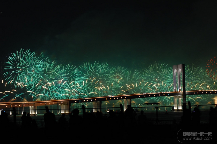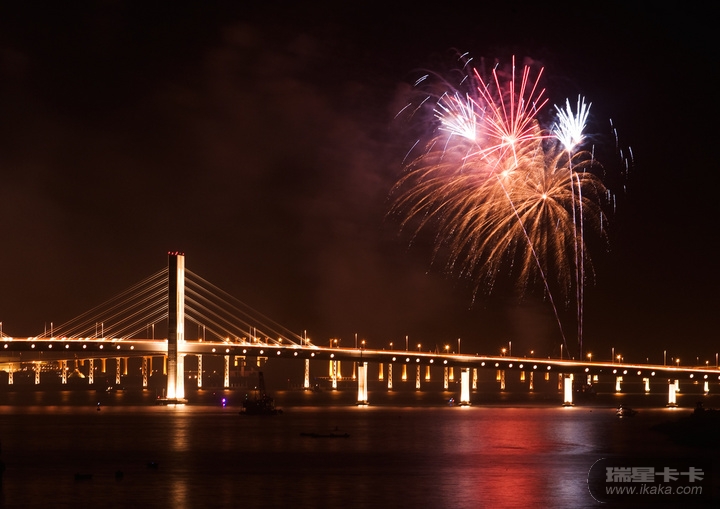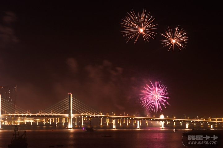 12月20日晚9时,在澳门特别行政区成立十周年纪念日的时刻,澳门半岛东南海面上呈现澳门史上最大规模的烟花表演。此次烟花表演在澳门半岛七处同时燃放,历时20分钟。