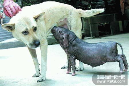 镜头回放:重庆一条母狗痛失狗崽后,竟捡回一头小猪当儿子养,每天喂它七八次奶,仅一个多月时间,小猪就足足长了4斤肉。如此希奇一幕让人惊叹不已。(8月23日《重庆商报》)