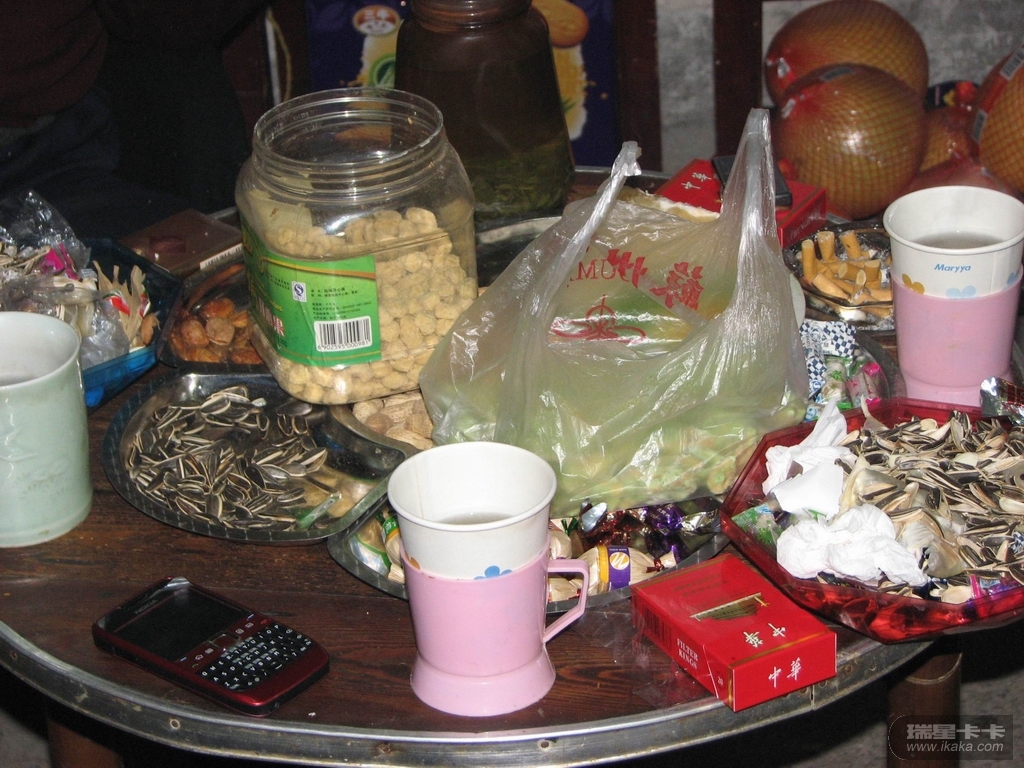 年二九12个人吃,2张八仙桌,5点半开始吃到9点半过,开始收场吃小吃,11点送亲戚走——可惜忘拍了