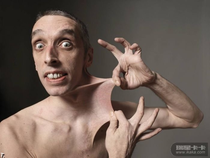 来自英格兰林肯郡的加里·特纳堪称全世界皮肤最有弹性的人,他能将自己的皮肤拽出15.8厘米长,并依靠这一“特技”入选《吉尼斯世界纪录大全》。特纳患有一种奇怪的皮肤综合症,由于结缔组织疾病引发的病变使皮肤变得非常有弹性。
