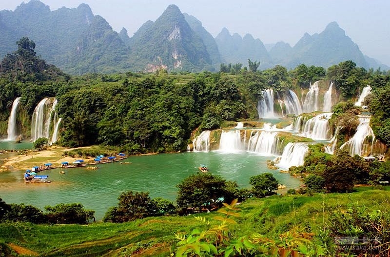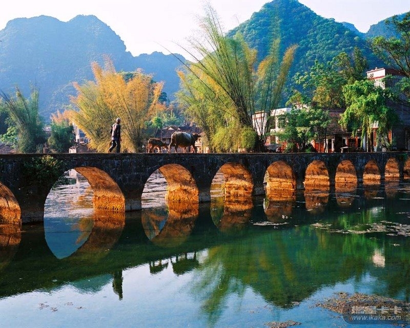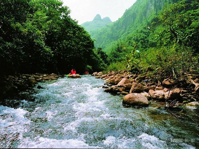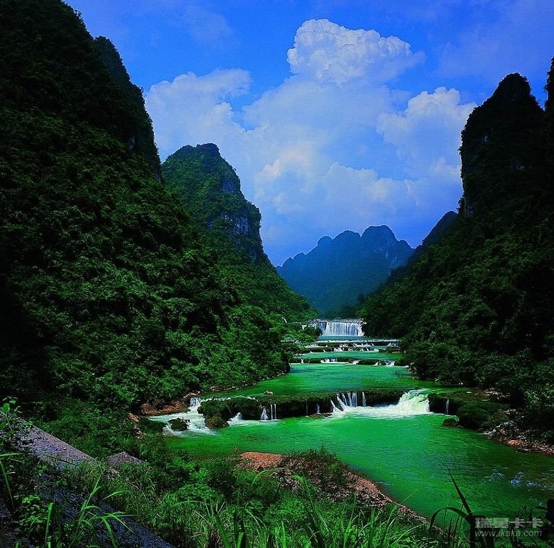 鹅泉位于广西靖西县城西南6公里处,是靖西著名的八景之一,已有七百多年的历史,闻名天下的“鹅泉跃鲤三层浪”,明代成化皇帝赐封的“灵泉晚照”古石刻使鹅泉披上了神秘的色彩,民间文艺表演古朴浓郁,参与性强,鹅泉的牛车、水车把人带入古老的民风民俗境界,还有古屯念安、三泉映月、睡美人、古碑文、鸳鸯树、龙神庙、鹅字碑、鹅仙塑像、叫喊岩等景点,游人可以在河中划竹排漂游,令人舒畅,回味无穷。