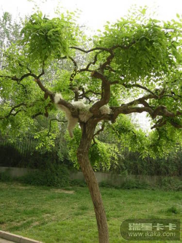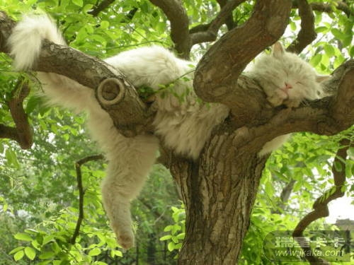 在龙潭湖的树杈上发现一只宿醉未醒的猫~