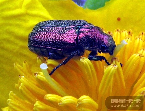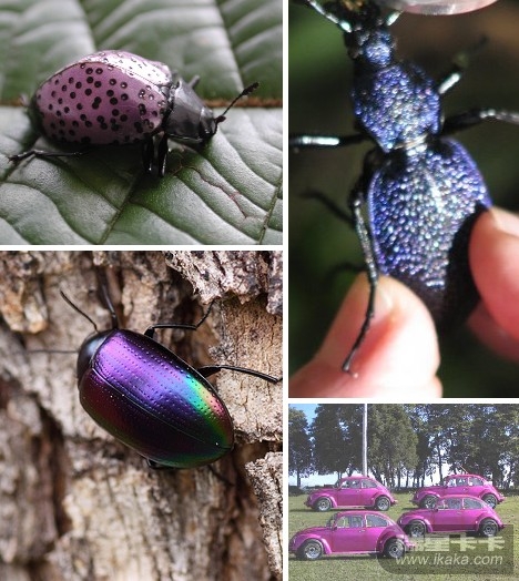 紫色甲壳虫非常罕见。在大多数情况下,这种甲壳虫显示的是并不是纯种的紫色,而是一种彩虹色。其实紫色帝王蝶也显示的是一种彩虹色。这种珠宝般美丽的昆虫显示的是一种混杂有蓝色、绿色和紫色的彩虹色。