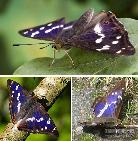 3. 紫色帝王蝶紫色帝王蝶是一种大型蝴蝶,在英格兰南部、欧洲大陆大部以及亚洲北部都有分布,最东在朝鲜半岛还有分布。紫色帝王蝶的紫色取决于每个人的感官。这种蝴蝶的翅膀上表面覆盖着透明鳞片,鳞片反射光线形成干涉图形,让我们的眼睛和大脑误以为紫色。