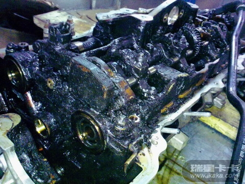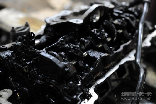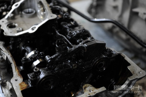 这台惨不忍睹的直四发动机,它的主人是一个姑娘,开BMW320i,她一直神话地认为“难道宝马还需要保养吗”,买了车就一直开,开了5万公里,没做过一次保养,直到开不动,到店维修时打开油底螺丝,连机油都放不出来。