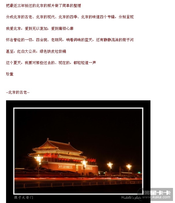 北京:这个城市对我而言还是很熟悉的,去过北京很多次,在北京也住过一段时间,对北京有独特的感情。现在身处南方,可能有对家乡的思念,可能是对北方的依恋。想念北京的古典,品味北方的神韵。