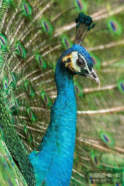 蓝孔雀是雉科孔雀属两种孔雀之一,另一种是绿孔雀。蓝孔雀主要产于巴基斯坦、印度和斯里兰卡,雄性是印度的国鸟。雄性蓝孔雀上部的尾羽约152厘米长,可以竖起来像一把扇子一样“开屏”。雄性蓝孔雀的总长度可达约两米,重四至六千克。相对于雄鸟雌鸟比较小,很不显眼,其身长仅约一米,重2.7至4千克。雄鸟的颈部、胸部和腹部呈灿烂的蓝色,雌鸟的羽毛主要为灰绿色。图为蓝孔雀。