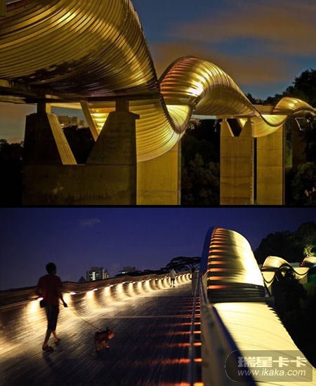 亨德森波浪桥是新加坡最高的人行天桥,造型别致,桥身犹如波浪,有四个波峰和三个波谷,给行人提供了观景的新高度,其波浪状的设计给人以视觉上的冲击力,动感十足。它衔接了花柏山公园和直落布兰雅山公园。全桥采用无障碍设置,桥面防滑,没有梯阶,设有扶手。