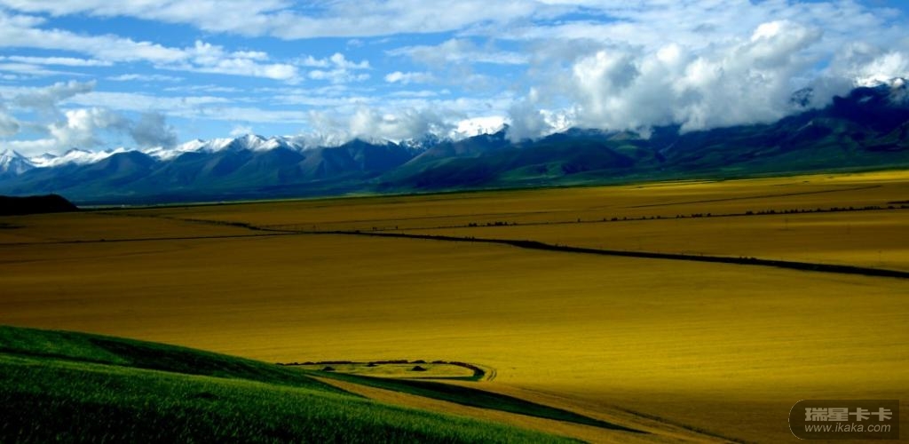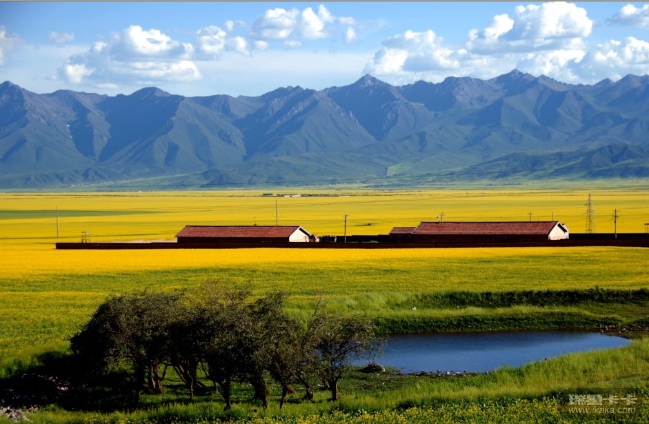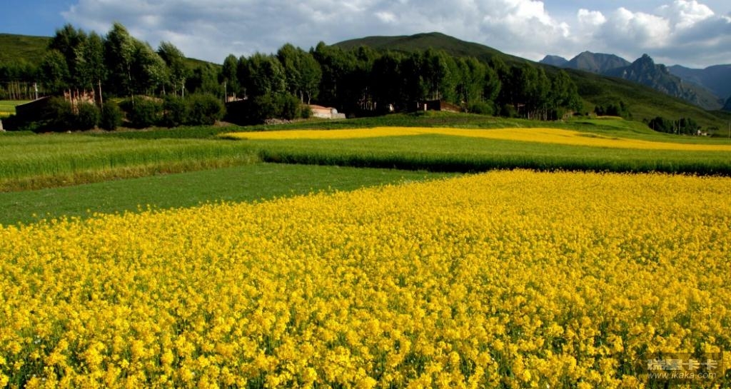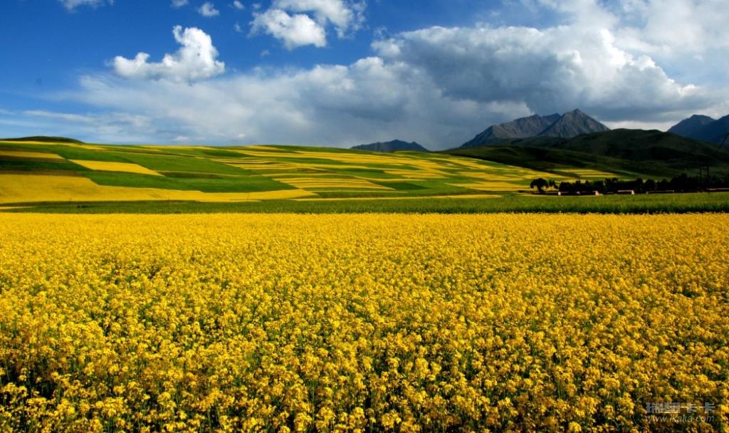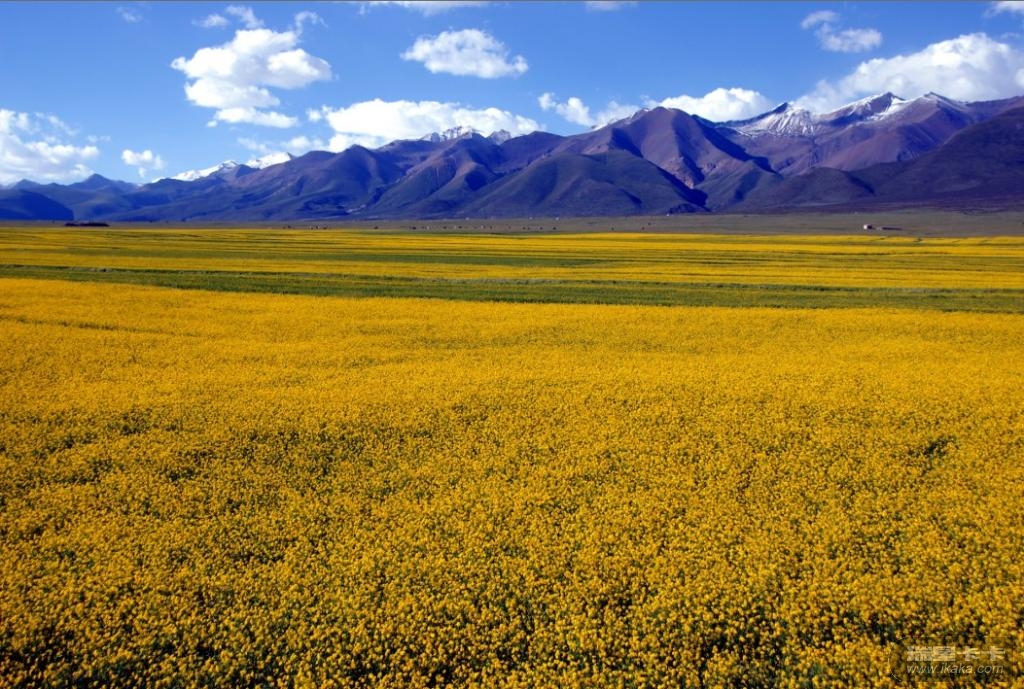 畔本身就是一种高原草坝形态。这里种植的油菜花多用拖拉机播种,一垄一垄的在大地上蜿蜒起伏直到天边,线条简单而不失悠闲美丽。