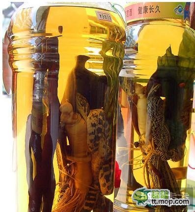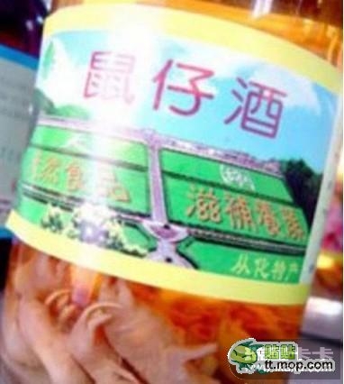 中国和韩国的鼠仔酒,在中国和韩国,人们将老鼠幼崽放入米酒瓶中,待其发酵一年后变成补酒。假如你能克制自己忘掉那些毛茸茸的啮齿科动物,啜上一口这种酒的话,你会发现落口满是汽油味。