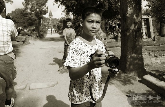 景區門口,也有拿著相機的大孩子目光銳利而專注的,對準踏入門的觀光客精準的按快門拍經製作好印有旅客個人照的紀念瓷盤,由另一個少年前來兜售, 如果說柬埔寨傳統的生活仰賴漁農補獵,時至現代,觀光客似乎是這些孩子眼中另一種形式的漁獲哩!