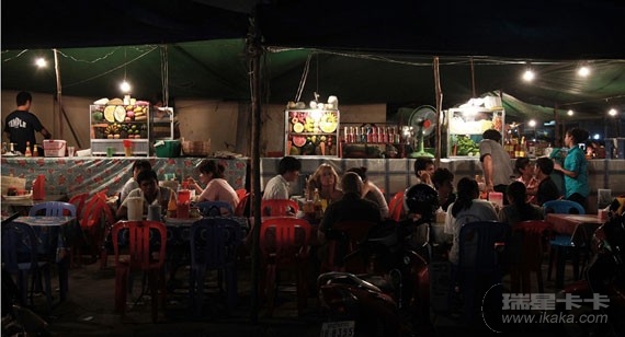 鬧區中,夜市的燈光隨著夜色與人潮一家家的點亮,受了一天暑氣的觀光客少了烈日的曝曬,這時似乎精力還更充沛的在鬧區街道繼續為旅遊樂趣與柬埔寨經濟努力貢獻,洋人街的酒吧是觀光客的享樂文明,不是柬埔寨的生活寫真,但應該是屬於這城市歷史中的一個現代切片,我還是記錄,或許當我垂垂老矣,在回頭翻看這些影像又有另一番世間無常、風華不再的感嘆。