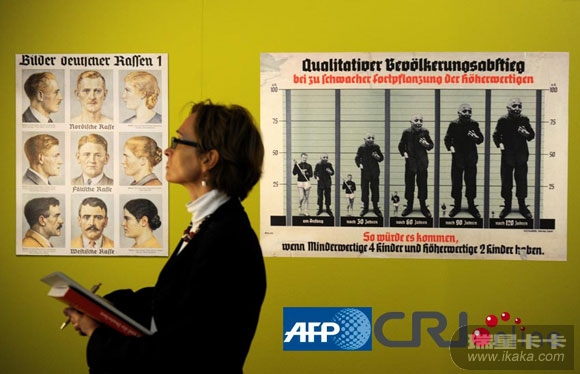 展览中再现了一战和二战时期的纳粹党徽、灯笼、纳粹宣传卡和壁画等物品。图片来源:(AFP/国际在线) 据德国《每日镜报》和法新社综合报道,位于德国首都柏林的德国历史博物馆13日首次举办一场名为《希特勒和德国人》的大型展览会。博物馆发言人称,这并不是要宣扬个人崇拜,而是要让人反思领袖在领导上的关键作用。 展览中再现了一战和二战时期的纳粹党徽、灯笼、纳粹宣传卡和壁画等物品。这场展览被认为是德国打破自1945年以来的禁忌,首次举行与希特勒有关的展览。 博物馆发言人鲁道夫说:“这个展览的主题是一个敏感的历史问题,但这并非要宣扬对希特勒的个人崇拜,而是要让人反思领袖在领导上的关键作用。”他介绍道,博物馆是由纳粹的一个旧军械库改造而成的,再现了1943年试图暗杀希特勒未遂的场景,还展示了一个希特勒的藏身地窖,但是本次展览中并不展示任何希特勒的个人物品。 据悉,两年前柏林杜莎夫人蜡像馆展出了一个希特勒的蜡像,但却招致大量民众不满,一名愤怒的参观者将“希特勒”的头打了下来。