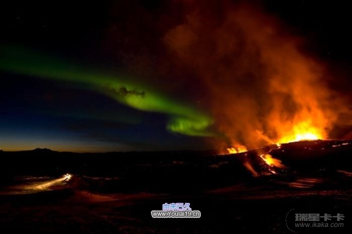 极光和火山一体,真是壮观