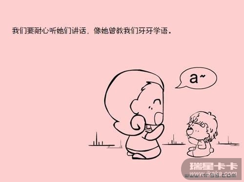 我们要耐心听她们讲话,像她曾教我们牙牙学语。
