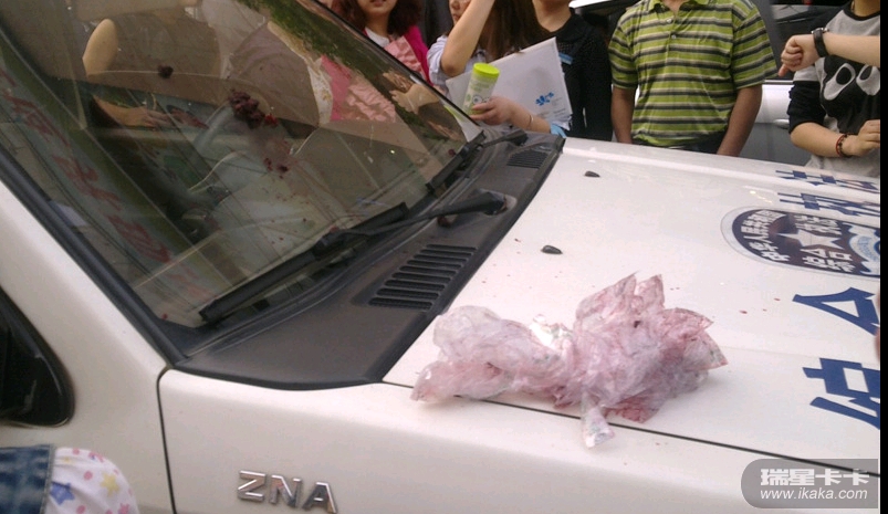 5月15日凌晨,网友“我是你牛牛姐”发微博称,14日成都盐市口有城管打了一位卖杨梅的老大爷,随后城管被众多群众围观声讨。这条微博的图片显示,一位身穿蓝色布衣的大爷拄着扁担站在一辆综合执法车前,老人身旁还有多位女性一起挡在执法车前,远处也有不少人围观。图为事发现场。摄影:网友“我是你牛牛姐”。