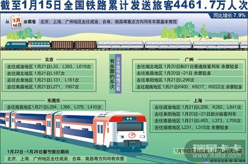 截至1月15日全国铁路累计发送旅客4461.7万人次
