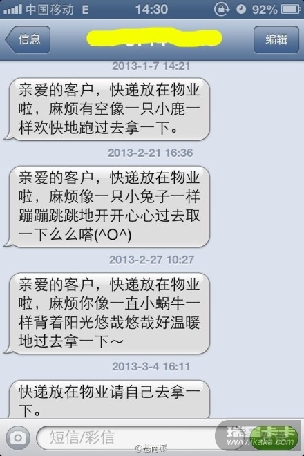 今天快递小哥的心情似乎不太好。