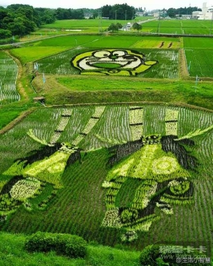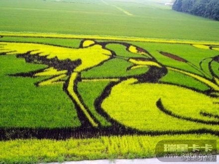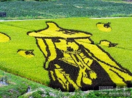 每年4月日本当地村民都会商讨当年的画作主题,然后将“起草”的任务交给村干部———他们为此夜以继日地工作十多天,精确地计算如何在一大片稻田里种植不同种类的水稻,并组织人员在田地里用芦苇秆做出上千个标记点。这里的稻田画主要采用黑稻米和紫稻米等水稻品种。