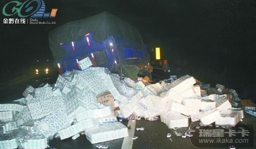 贵州货车侧翻一车纸巾遭哄抢 有人开车抢货