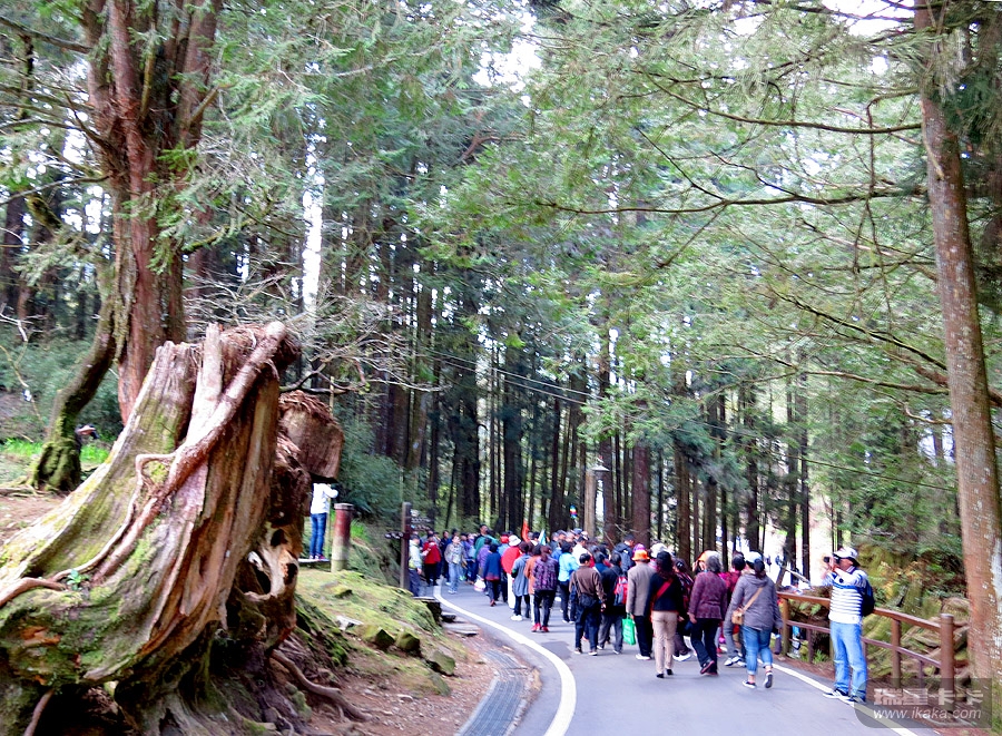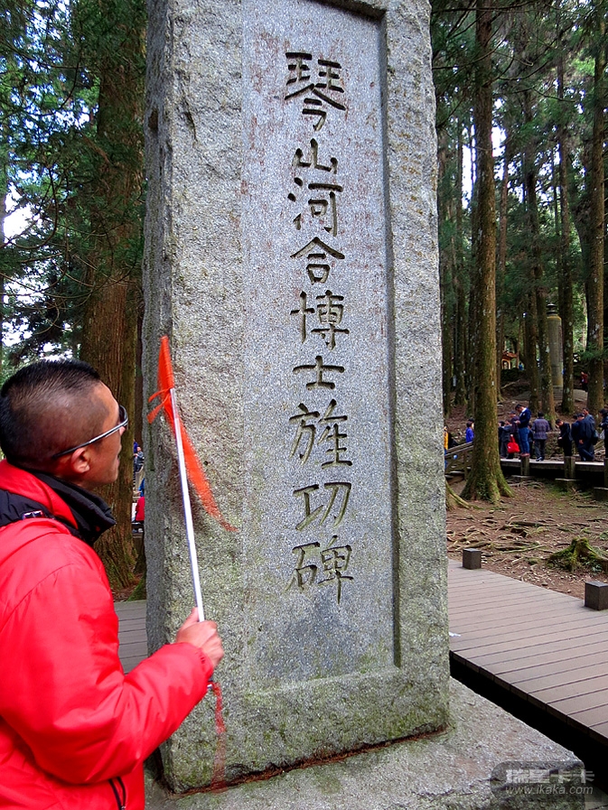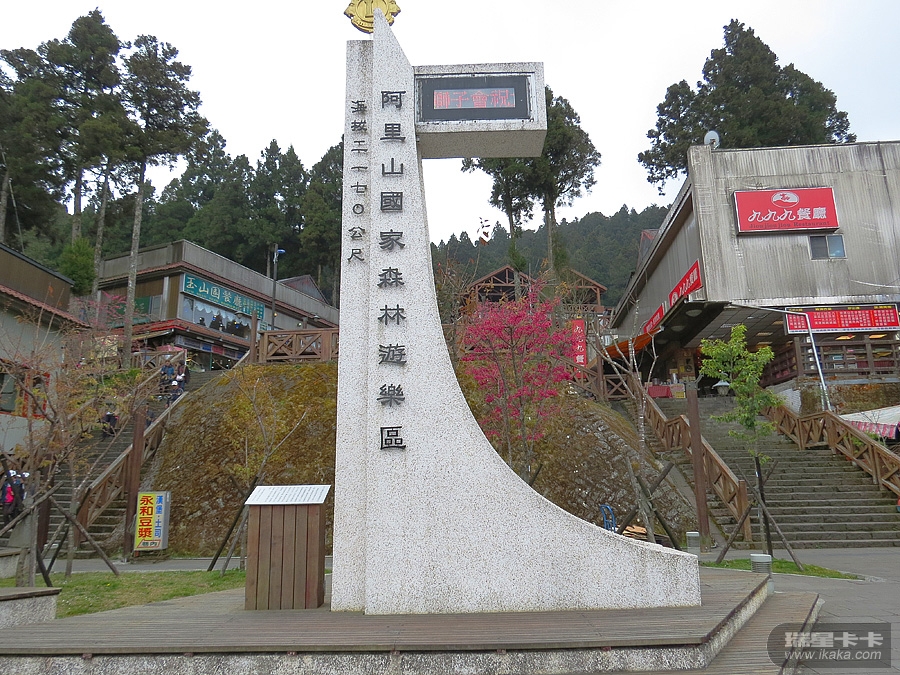 阿里山海拔2170米,并不算高,但对于东西海岸都为零海拔的台湾而言,却是“高耸入云”了。阿里山的主要景观是红桧树(又称圆柏,其木质粉红色,是建筑和家具用材),这里的许多红桧树都是千年以上的古树,蔚为壮观。听说阿里山的云海也挺有特色,但我们匆匆一过,根本看不到的。阿里山森林公园碑