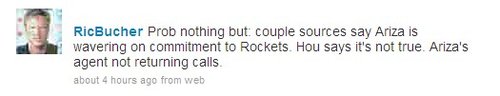 自由球员阿里扎反悔了与火箭之前的口头协议。”