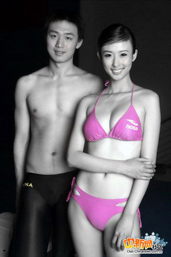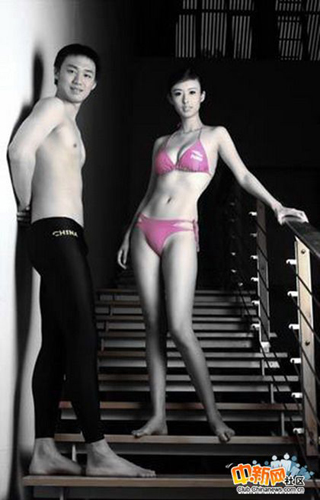 今天清晨就有网友在中新网社区上贴出了张琳早先与模特在泳池中戏水的一组写真照片,并向张琳和中国游泳队表达了自己的祝福。