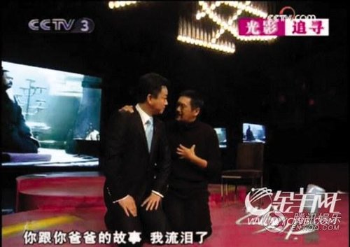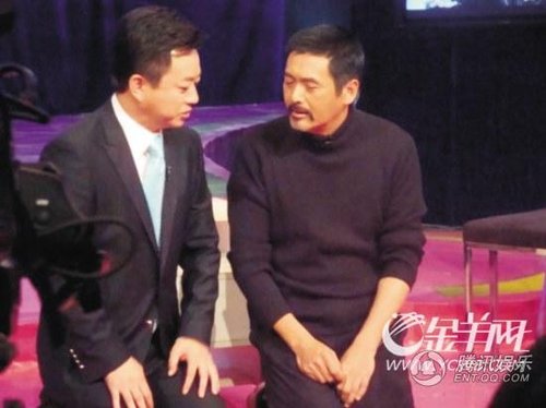 据网友爆料,录制一开始朱军先采访胡玫等主创。发哥没有在后台等着,而是坐在导播间里看朱军怎么主持。朱军当然还是一如既往地深情和煽情,还让鲍德熹当场表态“我永远是中国人”。轮到周润发上台,一开口就跟朱军说:“久仰,久仰!”朱军情绪那个饱满啊,从《满城尽带黄金甲》说到《孔子》,发哥除了应几声“对”就没怎么搭理他。到朱军问及当初胡玫怎么到香港找发哥、两人说了些什么时,状况终于出现了!