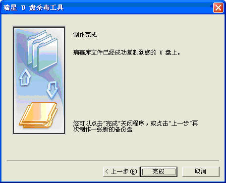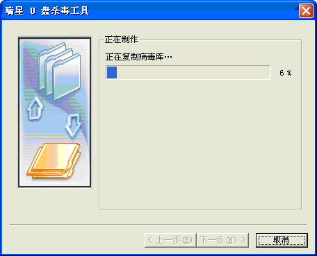 瑞星 U 盘杀毒工具,可以复制最新的病毒库到 U 盘。通过该功能,用户可以自行制作与当前计算机中安装的瑞星杀毒软件版本相一致的 U 盘杀毒工具。制作完成后,它能配合瑞星杀毒软件 2007 版光盘,进行杀毒操作、恢复硬盘数据。