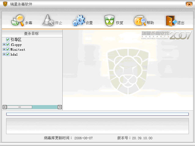 在连接U盘的情况下,使用瑞星2007版光盘引导,程序将自动查找连接的U盘并加载U盘上的病毒库。