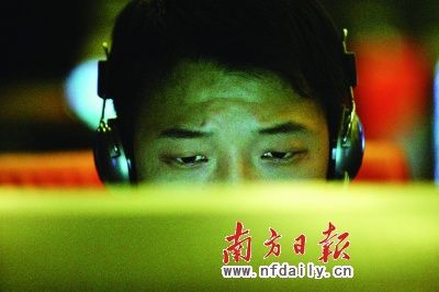 网吧里,在玩网游的少年一脸的专注。王轶庶