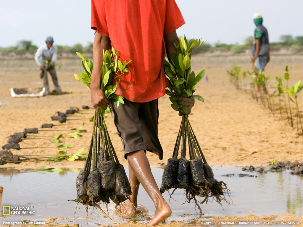 为了重建巴厘岛上的红树林,工人们在每英亩(0.4公顷)沙地上种植大约1300株红树苗,有近1000英亩(400公顷)的沙地已经种植完毕。印尼的林业部长说,自从2004年的致命海啸后,他的林业人员开始重视沿海森林能提供的防护。