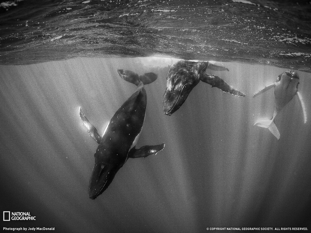 当你与座头鲸一同游弋时,征服你的不是它们的大小,而是它们的美丽。你只想永远地停留在那一刻。这三只座头鲸游到我这来打量我。他们展示着的美丽舞步让你的心脏停止跳动,你希望这一刻永远不会终结。当十分钟后它们结束并离开时,留给我的只有那兴奋的回忆。塔希提岛,法属玻里尼西亚。