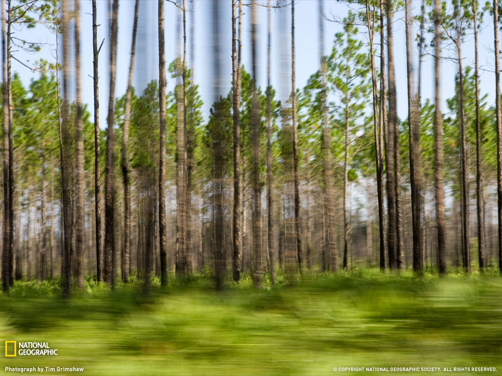 在前往美国乔治亚州奥克弗诺基沼泽的路上,路边的树木呼啸而过。