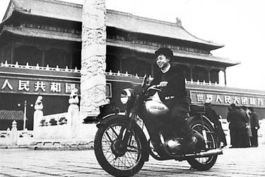 雷锋向一骑摩托车的青年借摩托车拍了一张
