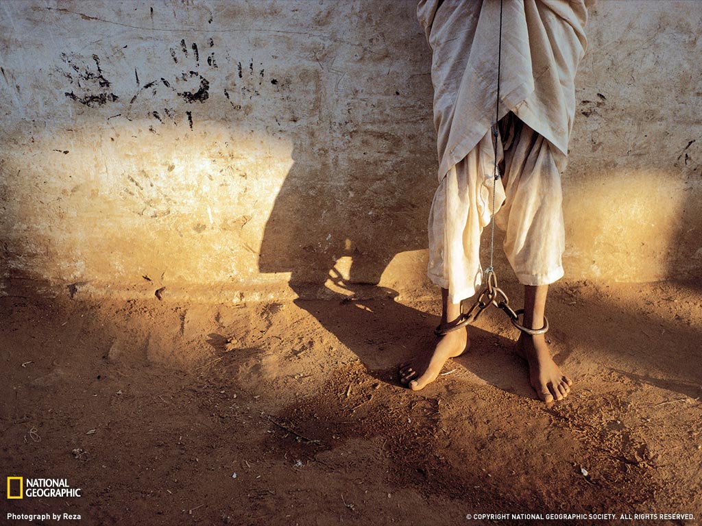 “我看到他的双脚被束缚着手脚的枷锁弄得伤痕累累。他的暴行被遏制了,双眼流露出的唯有听天由命。”- 雷扎(摄影)