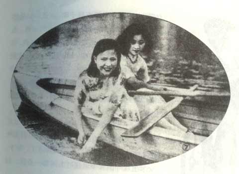 炎热的夏天,在丽娃栗妲村泛舟的上海女子(1931年)。丽娃栗妲,夏令俱乐部。第一次大战后由西乔妇女栗妲(Rita)在沪西原吴淞江废弃的河身东老河之滨兴建。取西班牙文“河”(Rio)之意,定名丽娃栗妲村。此城乡结合处,波光水色,环境幽静,却又离市区不远,大受欢迎。1937年抗日战争爆发后,沪西沦陷,造成交通不便,这个俱乐部日趋萧条。现为华东师范大学校园的一部分。
