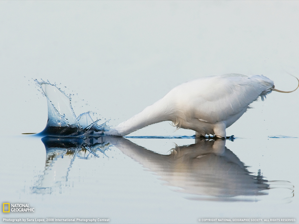 这只大白鹭在把脖子突然插进水里抓鱼之前静静地站了很久很久。接下来的几张照片则让我们看到它和它那抓来用作诱饵的鱼。这张照片是在佛罗里达州三尼贝岛的J,N “DING"darling国家野生动物保护区拍摄的。