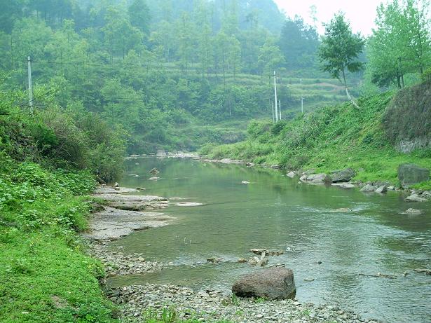 湾湾的小河,静静的山岗,农户们日出而作,日落而息.