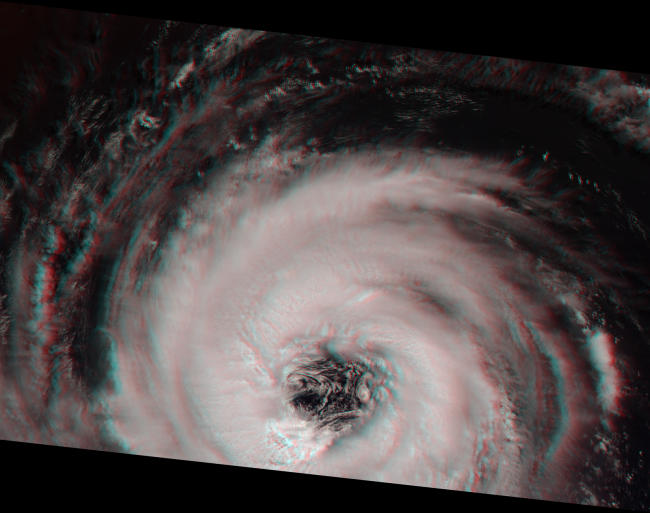 飓风眼的3D图,使用红蓝眼镜观看可获得立体效果。