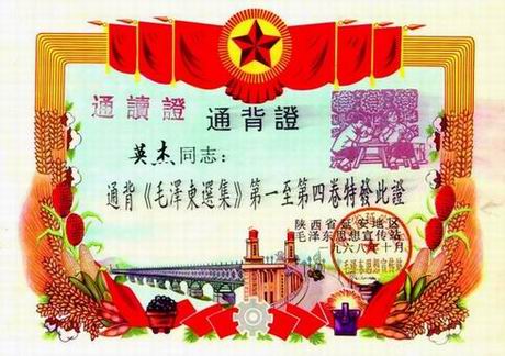 通背证。若不解释,现在的年轻人很难理解其含义。这是文革时期的怪胎,能够全文通背***的“老三篇”或《毛**选集》的证明。